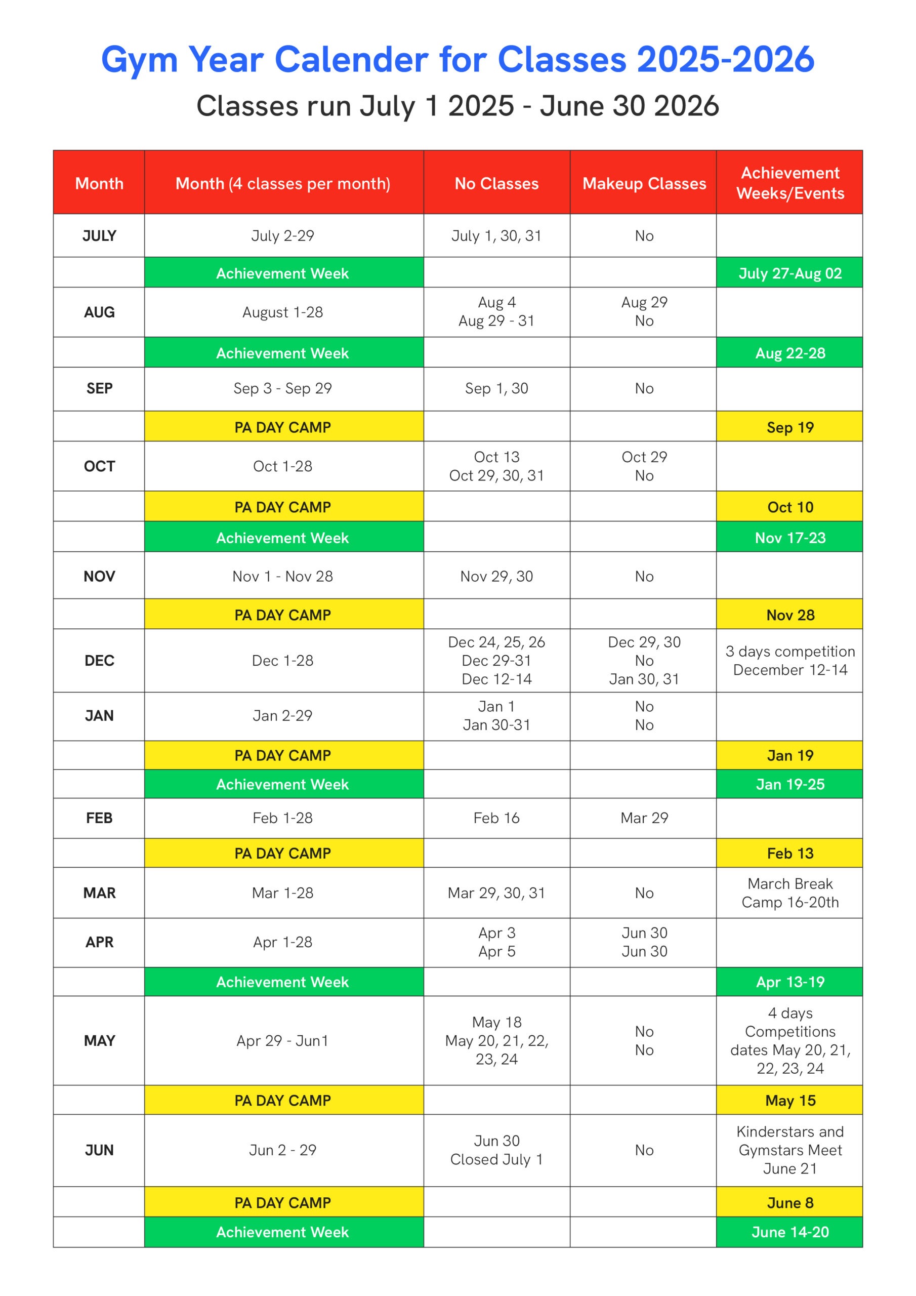 Our recreational programs will compliment any sport! With six Olympic events, it will provide challenge and skill progressions needed to develop strength, power, flexibility, skill progressions, and build character. Athletes will grow strong, focused, and confident.
